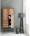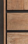 Meuble de rangement en teck avec tiroirs et portesLe meuble Metropole de 24Designs a une base en métal noir et un meuble enbois de teck recyclé . Le bois de teck et le métal sont non seulement durables, mais confèrent également à l'armoire unchaud,look moderne . Étant donné que les armoires et les tiroirs ont des bords inclinés vers l’intérieur, l’armoire a également une apparence unique. Bien entendu, l'armoire 24Designs Metropole se caractérise également par un espace de rangement généreux. L'armoire est équipée detrois portes ettrois tiroirs où vous pouvez facilement ranger beaucoup de choses derrière et dedans.