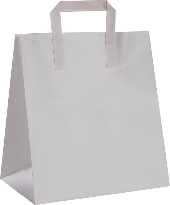 25 x Sacs de transport à emporter en papier Witte 26 x 17 x 25 cm - Sacs à emporter marron / Sacs en papier à emporter / Sacs à emporter en papier Kraft avec poignée / Sacs à poignées plates