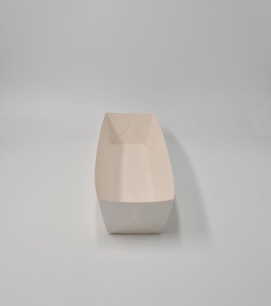 25x plateau en carton A16 - plateau frikandel - plateau snack - snack - plateau de service - karton blanc - écologique - durable - emballage - frikandel - rouleau de printemps