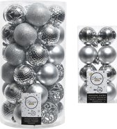 28x boules de Noël en plastique argent 4 et 6 cm - Décorations de Noël