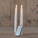Joli lot de 2 bougies torsadées. La lueur des bougies semble réelle. Il y a une télécommande incluse, mais à mon avis ce n'était pas nécessaire, mais j'imagine qu'elle pourrait être utile dans certaines situations.