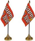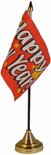 2x drapeaux de table Happy New Year / Happy New Year 10 x 15 cm avec support