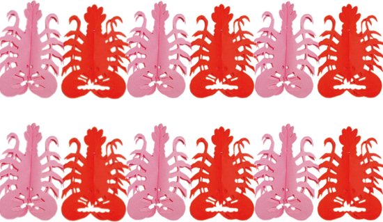 2x morceaux de guirlande de papier avec des homards de 3 mètres. Guirlande en papier avec des homards rouges et roses mesurant environ 3 mètres de long et 21 cm de large. Le pendule est ignifuge. Maritime Animaux aquatiques plage/pêche à thème cotillons et décorations.