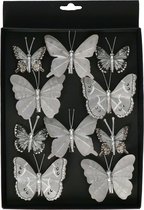 2x Papillons de décoration Witte sur clip 15 cm - Décoration/loisirs/Décoration de sapin de Noël papillons