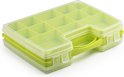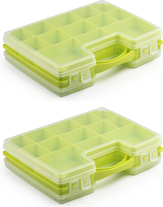 2x pcs mallette de rangement/boîte de rangement/boîtes de tri 22 compartiments plastique vert 28 x 21 x 6 cm - Boîte de tri petits objets