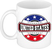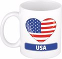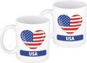 2 x coeur drapeau Amérique/ USA tasse / tasse. Ce mug avec le drapeau américain en forme de cœur a une contenance d'environ 300 ml. La tasse va au micro-ondes et au lave-vaisselle. Matière: céramique. Hauteur : 9,5 cm. Diamètre : 8,2 cm. Articles de fête pour les partisans des pays sur le thème des États-Unis.