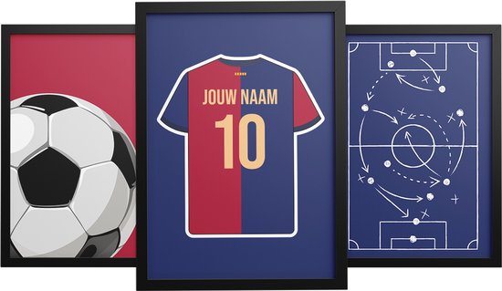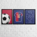 3-Liège Voetbal Poster Set Barcelona - Posters personnalisés avec votre propre nom et numéro - 30 x 40 cm