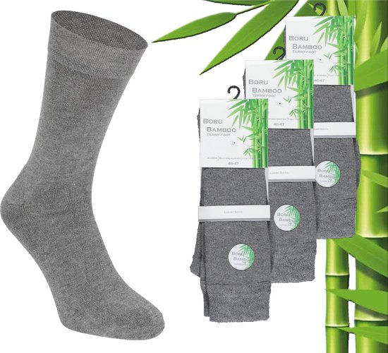 3 Paires Chaussettes Boru Bamboo - Bamboe - Tissu éponge - Grijs - Taille 46-47