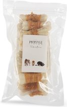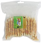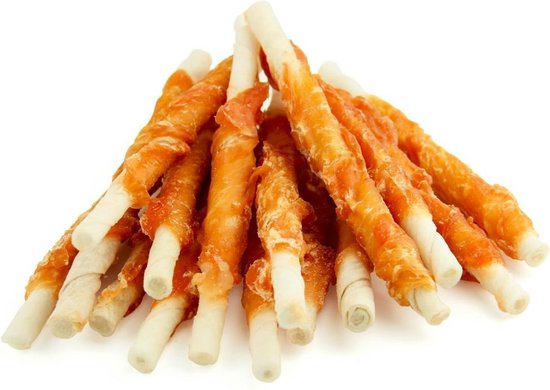 Poulet avec des bâtons de peau de boeuf pour votre chien! Le poulet est enroulé étroitement autour de lui pour que votre chien puisse mâcher très bien. Convient à tous les chiens.