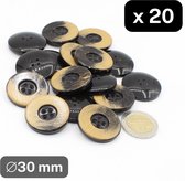 30 boutons en polyester mat épais, taille 18 mm, 4 trous, couleur beige.