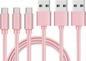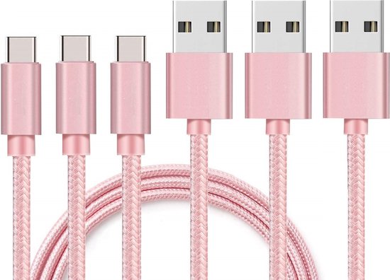 3x Câble USB C vers USB A Nylon Tressé Rose - 1 mètre - Câble de chargement pour Samsung Galaxy A20E / A40 / A50 / A70 / A80