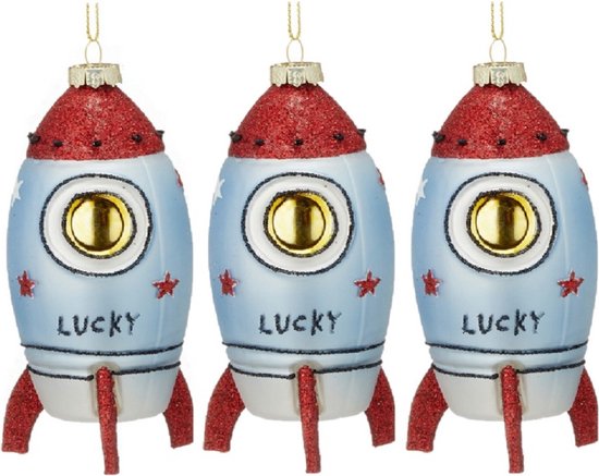 3x figurines de Noël pendentif fusée en verre 14 cm - Décorations de Noël et pendentifs de Noël - Décoration de sapin de Noël