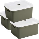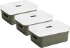 3x pièces de boîtes de rangement/paniers de rangement vert de 9 litres en plastique avec couvercle transparent 35 x 25 x 12 cm