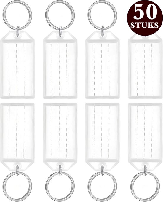 50 Pièces Porte-clés Ouvrants avec Porte-clés 30 mm et Étiquettes de Nom - Wit - Étiquettes de Porte-clés pour Adultes - Porte-clés - Différenciateur de Clés - Étiquettes avec Ring - Porte-clés Porte-clés - Étiquette de Bagage - Porte-clés