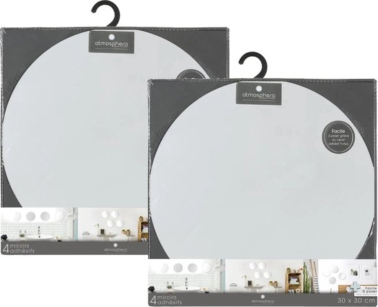 8x morceaux de carreaux de miroir ronds autocollants en verre avec ruban adhésif double face. Les miroirs adhésifs sont faciles à accrocher à l'aide du ruban adhésif double face, ce qui rend la surface du miroir aussi grande que vous le souhaitez. Les miroirs mesurent 30 x 30 cm par pièce individuelle. Carreaux miroir pour portes, placards et murs.