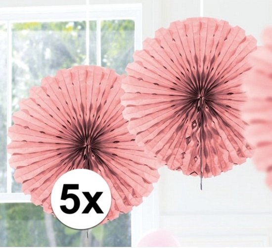 5x Éventail de décoration rose clair 45 cm