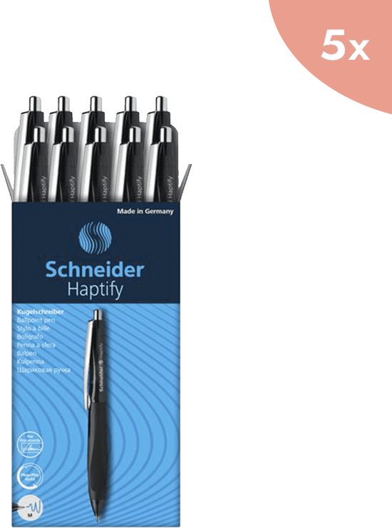 5x Stylo à bille Schneider Haptify boîtier noir - encre noire