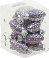 6x morceaux de décorations de Noël paillettes pommes de pin boules de Noël bruyère lilas 8 cm