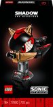 À construire et à exposer comme décoration de jeu : cet ensemble comprend la tête de Shadow avec ses pointes emblématiques et un support avec une plaque signalétique, ainsi que diverses références, dont une Chaos Emerald et 3 anneaux en or, cachés à l'intérieur du modèle.