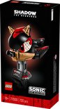 Construire et exposer – ce kit de modèle comprend la tête de Shadow avec ses pointes emblématiques et un support avec une plaque signalétique, ainsi que diverses références, dont une Chaos Emerald et 3 anneaux en or, cachés à l'intérieur du modèle.