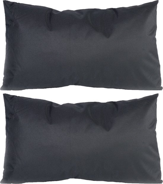 8x Canapé/coussins décoratifs pour l'intérieur et l'extérieur de couleur noir 30 x 50 cm. Ces beaux coussins sont résistants à l'eau et aux UV. Coussins d'extérieur pour votre ensemble / bancs de jardin. Diverses belles couleurs de luxe pour un prix supérieur. Coussins de jardin pour chaises d' extérieur.