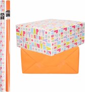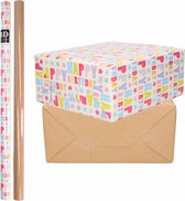 8x Rouleaux de papier d'emballage kraft paquet joyeux anniversaire - jaune 200 x 70 cm - papier cadeau/d'expédition