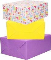 8x Rouleaux de papier d'emballage kraft dans les couleurs jaune et un motif joyeux anniversaire 200 x 70 cm. Papier cadeau/ papier de couverture et papier d'expédition. Matériel: Papier, qualité 70 grammes. Papier aux couleurs jaune et joyeux anniversaire. Ce pack est un incontournable pour chaque foyer. Vous recevrez 4 rouleaux de chaque couleur. composé de 4 rouleaux de papier cadeau kraft jaune 200 x 70 cm, 4 rouleaux de papier cadeau kraft imprimé Happy Birthday 200 x 70 cm