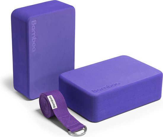 A-FTNSS Yoga Blocs Set Violet | Mousse d'éthylène et d'acétate de vinyle | 2 Blocs de Yoga (22,7 x 12 x 7,5 cm) + Riem de Yoga gratuite