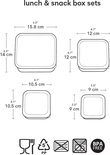L'ensemble boîte à lunch et collation est en polypropylène. Le matériau n'est pas adapté au lave-vaisselle et au micro-ondes. Nous vous recommandons également de laver toutes les pièces dans de l'eau chaude savonneuse avant utilisation.