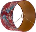 Abat-jour cool fabriqué aux Nederland d'un velours de belle qualité avec une belle impression de paons sur un fond rouge foncé. Un velours de caractère. Très doux au toucher et tire au toucher. Equipé d'un intérieur doré et d'un cadre doré avec connexion E27 . L'abat-jour peut être utilisé comme lampadaire. L'abat-jour laisse passer peu de lumière, mais c'est un bel objet dans la pièce.