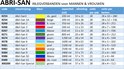 Dimensions Absorption Conditionnement ABENA San Premium 5 28 x 54 cm 1200 ml 36 protections ABENA San Premium 6 30 x 63 cm 1600 ml 34 protections ABENA ASan Premium 7 36 x 63 cm 2100 ml 30 protections ABENA San Premium 7 XXL 46 x 84 cm 2000 ml 26 protections ABENA San Premium 8 36 x 63 cm 2400 ml 22 protections ABENA San Premium 9 37 x 73 cm 2500 ml 28 protections ABENA San Premium 10 37 x 73 cm 2800 ml 25 protections ABENA San Premium 11 37 x 73 cm 3400 ml 21 protections ABENA San Premium 11 XXL 46 x 84 cm 3400 ml 16 protections ABENA San Special 36 x 70 cm Fécale 28 protections