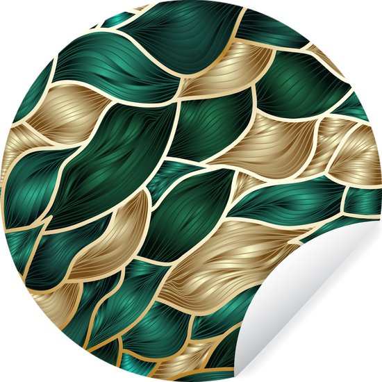 Abstrait avec papier peint cercle mural or et vert - 100x100 cm - peinture ronde - cercle de papier peint - cercle mural - cercle vivant - auto-adhésif et découpe ronde