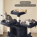 Il y a une maison confortable au troisième étage. Les deux étages au-dessus seront bientôt l'endroit idéal. Après tout, le lit de chat classique et la hauteur ludique sont irrésistibles. Les niveaux supérieurs ont également chacun une balle sur une ficelle.