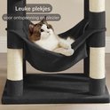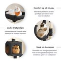 Deux balles en peluche suspendues avec clochettes encouragent votre chat à jouer, et il y a également deux balles en peluche de rechange sans cloches, pour que vous puissiez jouer en silence. La disposition en gradins et les plates-formes d'escalade permettent aux chatons et aux chats plus âgés de monter et descendre facilement. De plus, le griffoir est facile à nettoyer ; les cheveux, la saleté et les miettes peuvent être facilement enlevés avec un rouleau à peluches ou un aspirateur. Avec cet arbre à chat, chaque jour devient une nieuw aventure pour votre chat !