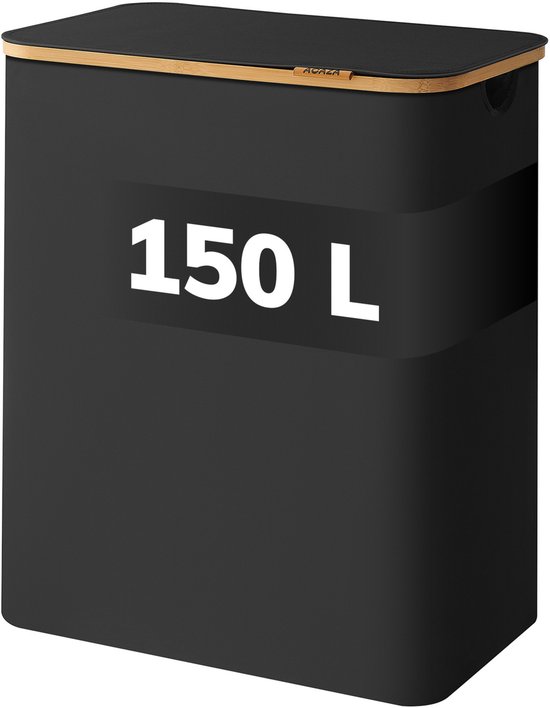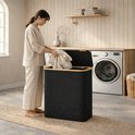 ACAZA Panier à Linge - Trieur de Linge - 3 Compartiments - Bamboe - Zwart