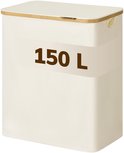 ACAZA Panier à Linge - Trieur de Linge - Panier à Linge avec Couvercle - Panier à Linge 3 Compartiments - Bamboe - 150L - Wit