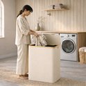 Cet élégant panier à linge de 150 litres, avec des dimensions de 60 x 38,5 x 70,5 cm et trois compartiments spacieux, est parfait pour les familles composées de plusieurs membres. Il facilite le tri et le stockage du linge et assure une routine de lessive organisée. Le couvercle intelligent empêche la poussière d'entrer et garantit que le contenu reste propre et hors de vue. Le logo en simili cuir sur le couvercle constitue non seulement un ajout élégant, mais également une poignée pratique pour une ouverture facile.