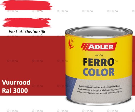 ADLER Ferrocolor 3in1 peinture antirouille – 0,75 Litre – Rouge feu – Apprêt et vernis en un – Pour intérieur & extérieur – Pour fer, acier, zinc & aluminium – Respectueux de l'environnement – Sans apprêt