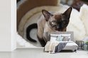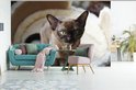 Adorable petit chat birman dans le panier papier peint photo vinyle largeur 450 cm x hauteur 300 cm - Tirage photo sur papier peint (disponible en 7 tailles)