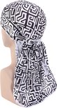 Afabs® Durag / Du-rag / Do-rag / Bandana - Unisexe - Toile de boue Zwart / Wit - Vagues