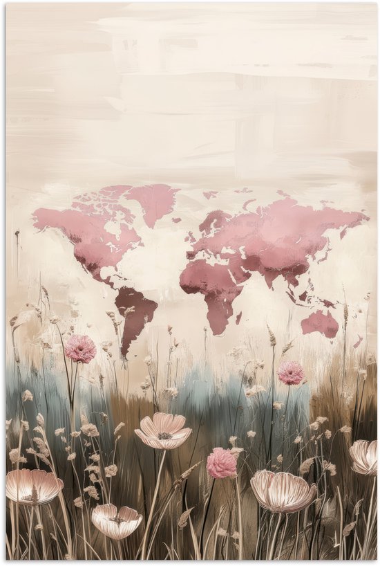 Affiche 120x180 cm - Wereldkaart - Rose - Fleurs - Posters - Décoration chambre - Décoration murale salon - Décoration murale chambre XXL