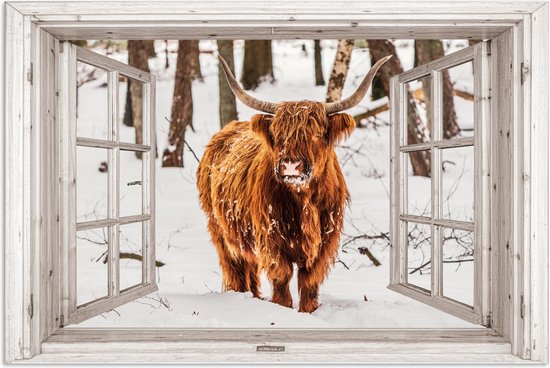 Posters - Scottish Highlander - Neige - Hiver - Nature - Animal - Vue - Rural - Affiche photo