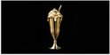 Une grande tasse à milkshake avec une finition dorée brillante, remplie d'une garniture dorée richement détaillée et dégoulinante. Une paille dépasse gracieusement de la tasse, tandis que le fond sombre rehausse le luxe et l'élégance de cette œuvre d'art.