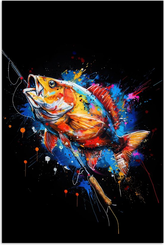 Affiche 40x60 cm - Graffiti - Sport - Pêche - Poisson - Canne à pêche - Posters - Décoration murale pour chambre d'ado - Décoration chambre ado - Accessoires chambre ado