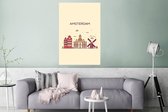 Illustration skyline ' Amsterdam' sur fond marron clair 120x180 cm XXL / Groot format!