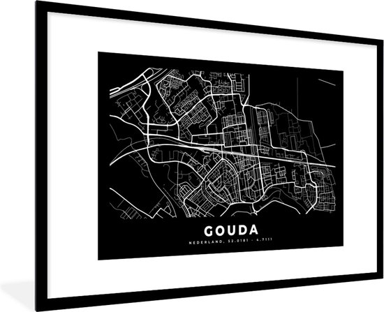 Affiche avec cadre Carte - Gouda - Zwart - 120x80 cm