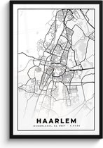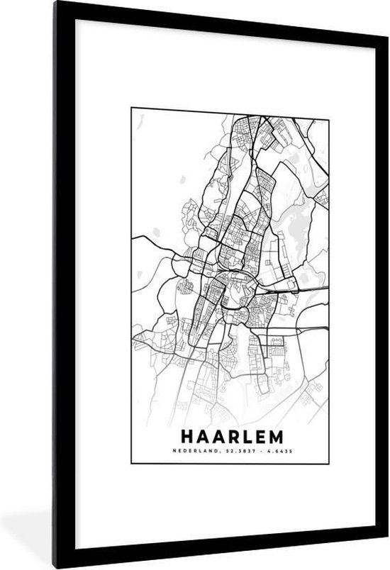 Affiche avec cadre Carte - Haarlem - Zwart - Wit - 60x90 cm