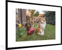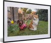 Affiche avec cadre Chien - Chat - Jardin - 90x60 cm
