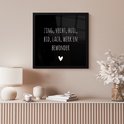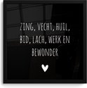 Affiche avec cadre Citation néerlandaise : 'Chantez, combattez, pleurez, priez, riez, travaillez et admirez' sur fond noir - 40x40 cm