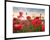 Affiche avec cadre Coquelicot - Coquelicots au soleil cadre photo noir - cadre photo noir - 120x80 cm - Affiche avec cadre